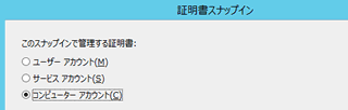 “証明書のスナップイン”で「コンピューターアカウント(C)」の選択し、[次へ(N)>] をクリックします。