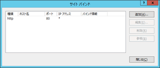 [OK]ボタンをクリックし、<サイト バインドの追加>のダイアログを閉じます。